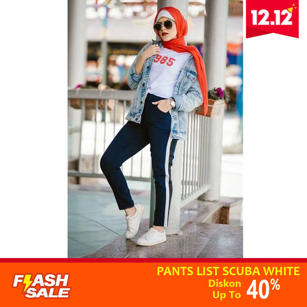 CELANA ZARA LIST PUTIH ALL SIZE MILANO SCUBA PREMIUM . Sumber Gambar : shopee.co.id